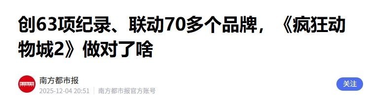 南方都市报 2025.12.4 创63项纪录、联动70多个品牌,《疯狂动物城2》做对了啥